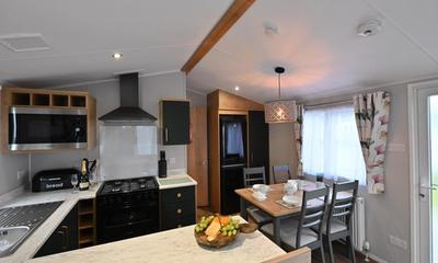 Immerse yourself in the spacious comfort of our dog-friendly, three-bedroom Gold holiday home. With one double bedroom, two twin bedrooms, and a pull-out bed settee that acts as a good-sized double bed in the living room, there are plenty of places to rest your head. The open and airy living area creates an inviting atmosphere, while the fully-equipped kitchen has everything you need for family mealtimes. The outside sun deck is perfect for relaxing or dining, with scenic views of the surrounding countryside. Guests can bring along up to two well-behaved dogs.