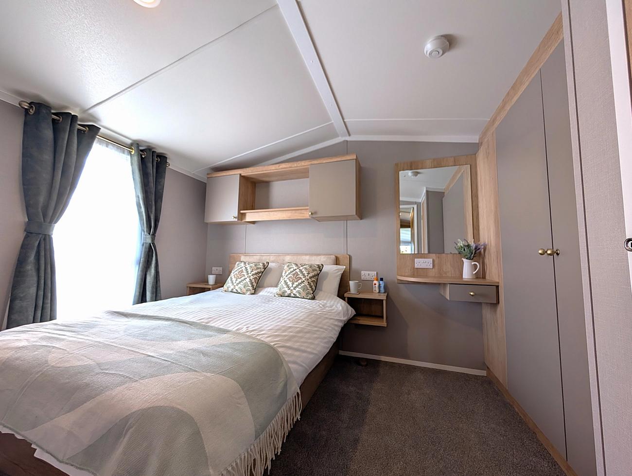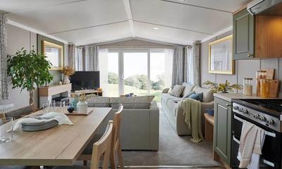These holiday homes have stylish interiors, spacious living areas and some of the best views on the park. Both the two and three bedroom options include an en-suite toilet in the master bedroom and a separate shower room. Relax in the cosy living room with sofa, arm chair, smart television, and large windows that bathe the room in natural light and offer stunning views of the surrounding landscape. Step outside the double doors onto the sun deck, and admire beautiful views of the Cornish countryside and sea.